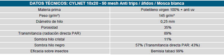 La malla anti-insectos limitan la presencia de plagas en los cultivos.Ha sido diseñadas para ofrecerle la mayor protección y efectividad posible, con la más alta calidad. Su reducido tamaño de poro (50 mesh) hace de barrera física contra insectos perjudiciales para los cultivos.