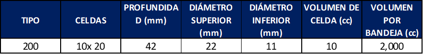 BANDEJA TERMOFORMADA DE 200 CAVIDADES(1.7)